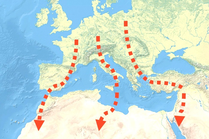 1. Percorso ovest: attraverso la Francia, la Spagna e lo stretto di Gibilterra in Marocco